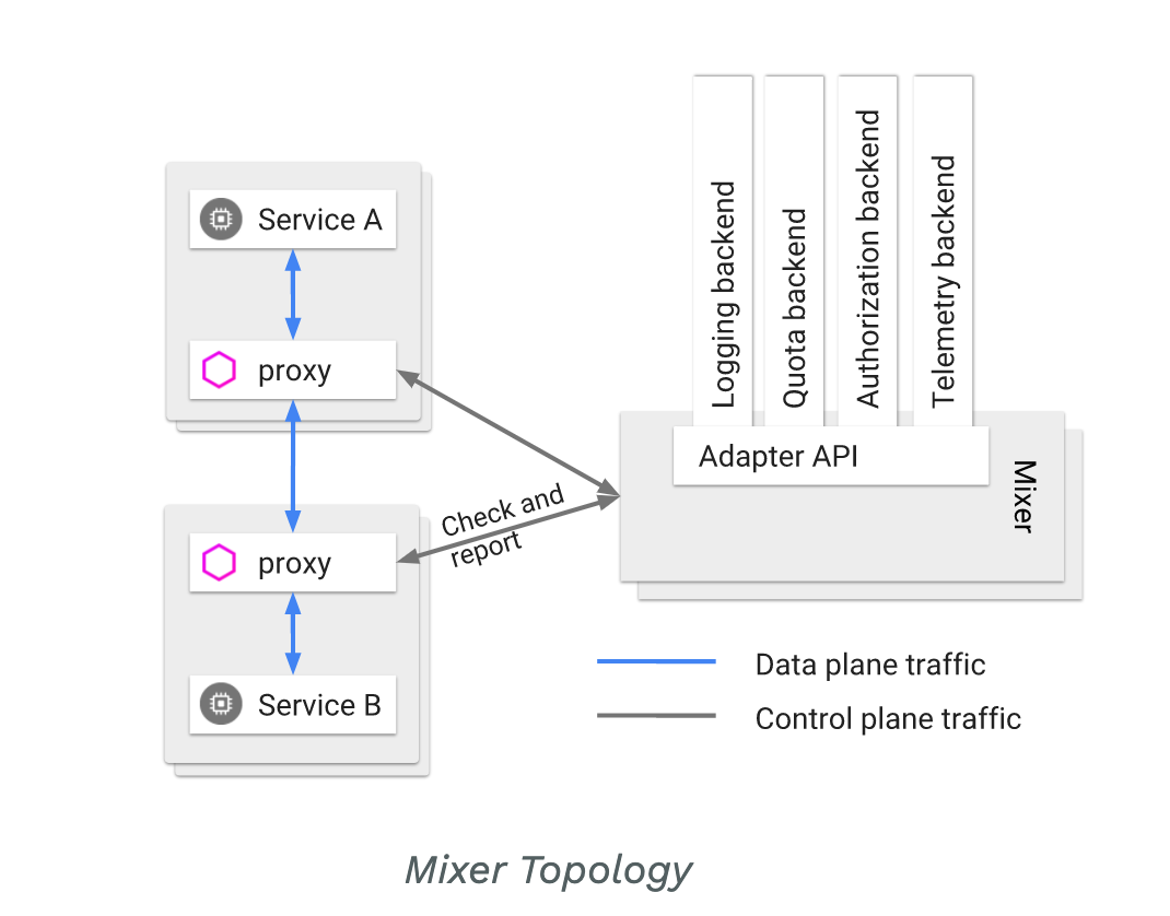 Mixer는 각 Envoy Proxy와 연결을 맺고, 서비스 간 트래픽에서 발생하는 메트릭을 수집해 Prometheus 같은 모니터링 시스템으로 전달하는 역할을 담당했습니다.