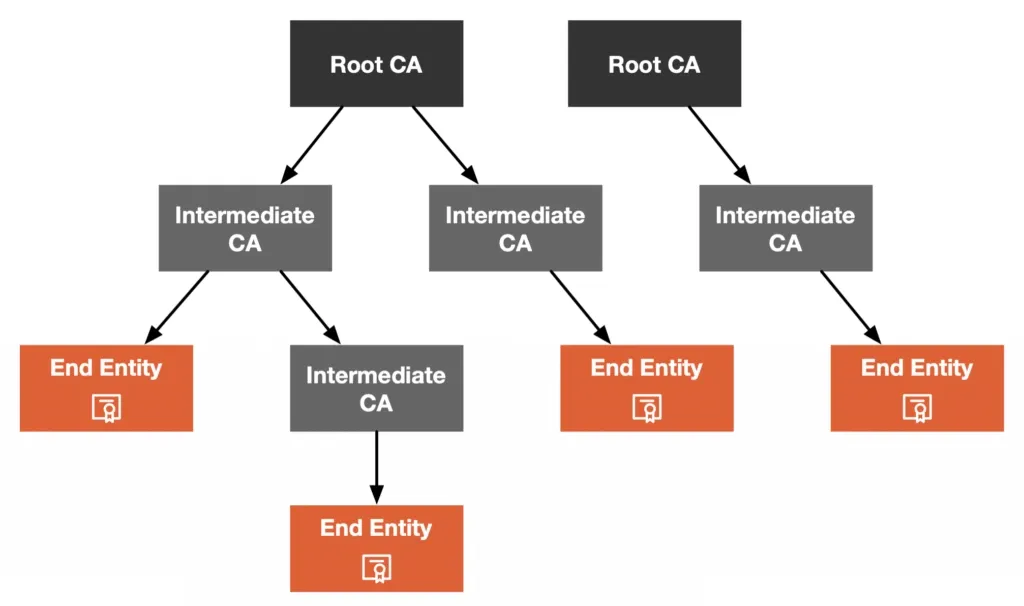 Intermediate CA수평적 분리: 같은 루트를 공유하지만 영역/목적별로 분리 가능(e.g. Prod / Dev / Test 별, Region 별, 사업부/라인 별, 클러스터 그룹 별)- 보안/리스크 분리: 한 중간 CA 키가 유출돼도 그 도메인(예: Prod/Region/클러스터)만 영향을 받음